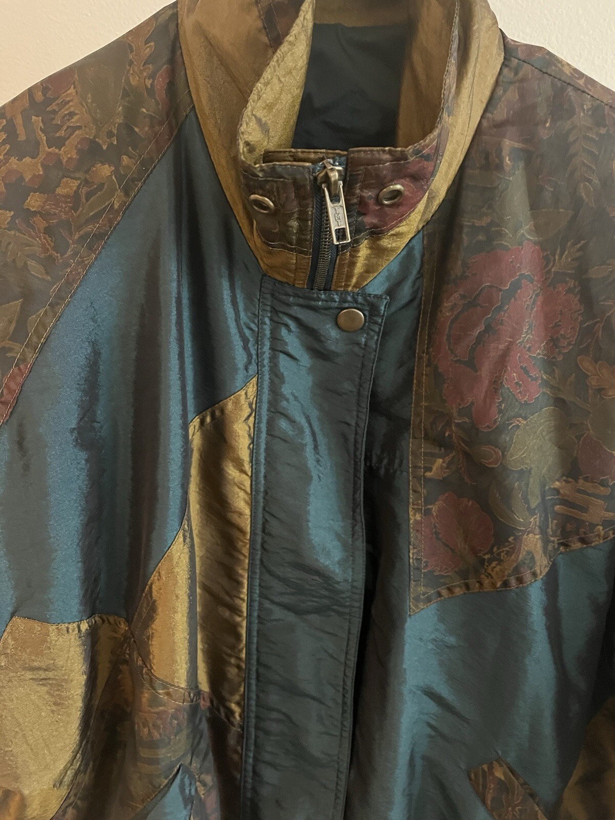 This vintage Lavon windbreaker jacket features a unique Aztec geometric pattern in shades of purple and teal, giving off 80s costume cosplay movie prop vibes. Made of nylon with polyester and cotton lining, this short jacket has long sleeves, a zip closure, and is machine washable. The jacket is accented with quilted detailing, embroidered logos, and a vintage Lavon brand tag, embodying a retro look. With features like elastic waist, shoulder pads, and wind-resistant properties, this limited edition jacket is a stylish and functional piece for all seasons.
