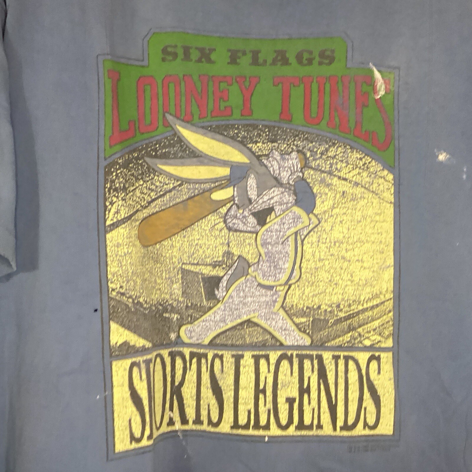 Vintage 90s Looney Tunes T-shirt Mens XL Six Flags Bugs Bunny Sports Legends Brand: Six Flags Size: Mens XL (Chest "25.5 / Length "28) Condition: Pre-Owned / Fair Used condition with minor signs of ware, please see photos for any specific defects or details worth noting. If item is used the item will be washed and inspected before listed. Items are stored in a smoke and pet free environment. We offer combined shipping discounts on multiple item orders. Any questions feel free to DM me thanks!!!