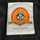 Vintage 90s Looney Tunes Leather Bomber Jacket 1997 Warner Bros Cartoon Looney Toons Black L Large Taz Tasmanian Devil, Pepe Le Pew, Bugs Bunny, Daffy Duck, Marvin the Martian, Yosemite Sam, Tweety Bird, Gossamer, Sylvester CONDITION: Has a bit of color bleed on Gossamer and a couple small dots on Tweety Bird's face. No other flaws noticed. See photos. SIZE AND MEASUREMENTS: Mens/Unisex L Large Width 25" - Underarm to underarm Length 26.5" - From the back, measure base of collar to the bottom Sleeve Length 35" - From the center of the back of the neck to the shoulder to the bottom of the sleeve