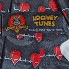 These vintage 90s silk OR polyester novelty neck ties feature characters from Looney Tunes. These ties are colorful and made from either silk or polyester, with a classic length and width. Most in excellent condition, one has a spot as shown in the photos. Please review these closely. Note: colors may appear differently across devices and lighting conditions.