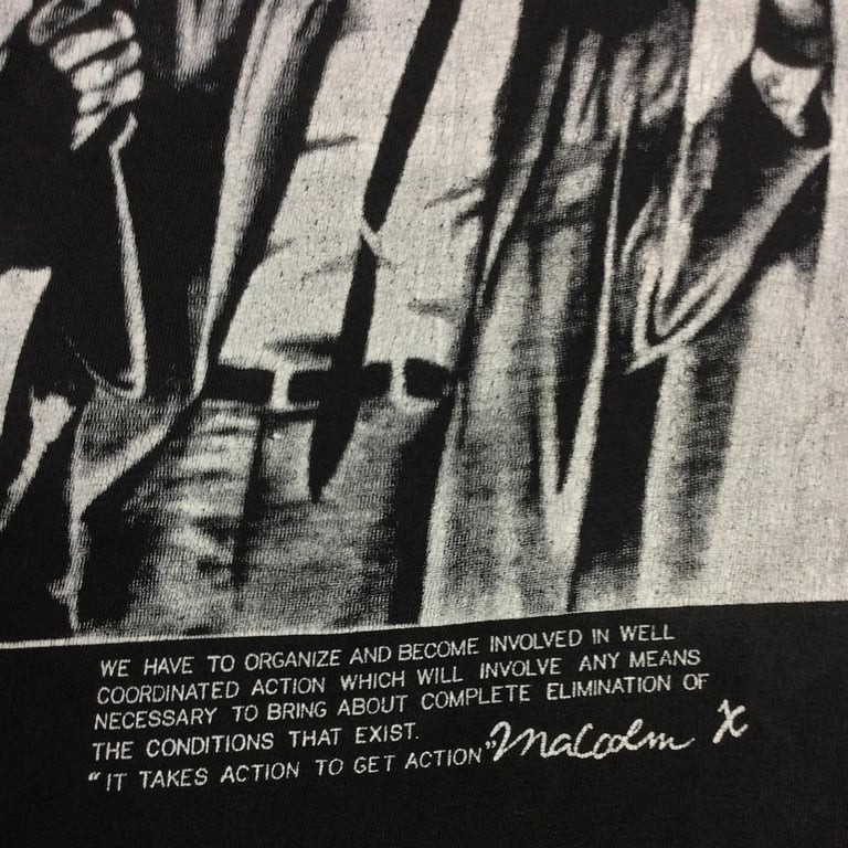 90’s Black cotton Activist Malcolm X By Any Means Necessary graphic T-shirt black graphic, cotton tee, activist style, Malcolm X, retro t-shirt, political statement, 90s inspired, black and white, protest apparel, streetwear
