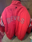 Represent the New Jersey Devils with this vintage 90s puffer jacket. This reversible jacket features the team's logo on both the inside and outside, making it a rare find for any Devils fan. The jacket is made with high-quality materials and is officially licensed by the National Hockey League. Perfect for the regular season, this jacket is perfect for any game day or casual wear. The jacket is sized XL and is suitable for men of all ages. This rare piece of fan apparel is a must-have for any true Devils fan. Rare in perfect shape. There is no hood. Not sure if one came with it bin free shipping