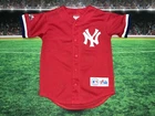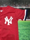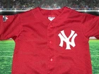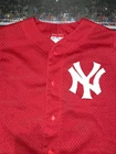 Nice and clean 9/10 condition The product is a vintage 90's New York Yankees youth jersey in size small, made in the USA by Majestic. It features a classic red color and is officially licensed by the Major League Baseball (MLB). This unisex children's jersey is perfect for young fans looking to support the New York Yankees during regular season games or MLB events. Made with high quality materials, this jersey is a nostalgic piece of fan apparel for baseball enthusiasts.