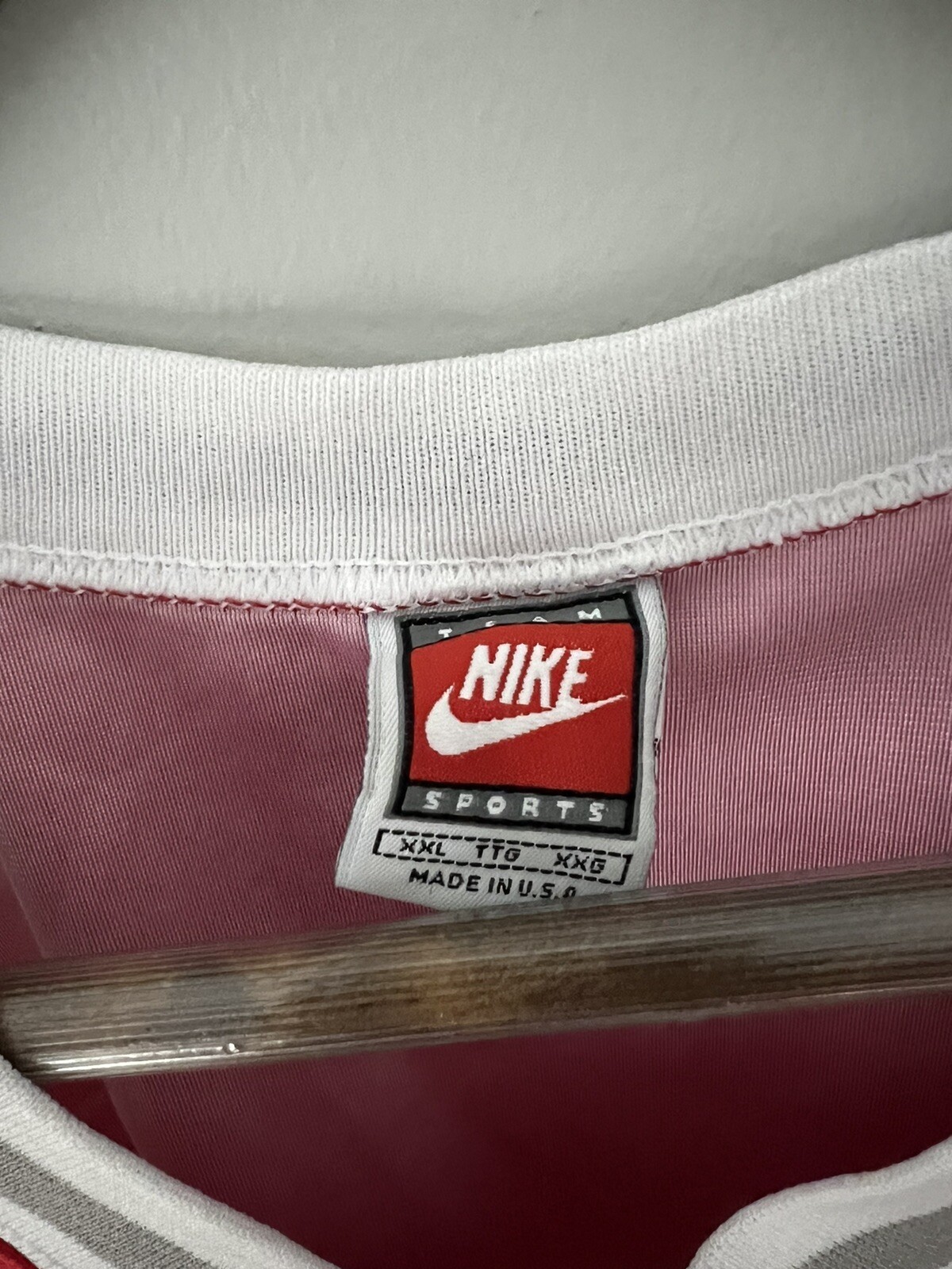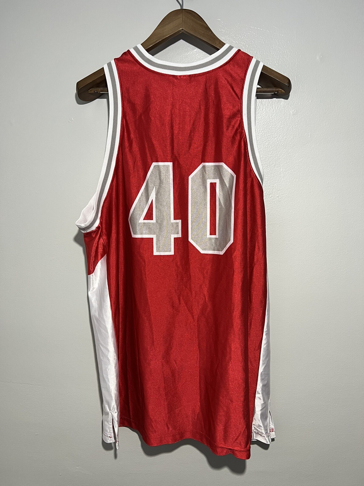 Show your Buckeyes pride with this vintage 90's Ohio State University basketball jersey from Nike. Made with high-quality materials, this jersey is perfect for any fan of the team looking to represent their colors on and off the court. With a size of 2XL and the iconic Buckeyes logo prominently displayed on the front, this jersey is a must-have for any Ohio State fan. Whether you're shooting hoops or cheering from the stands, this jersey will make you feel like a true Buckeyes champion.