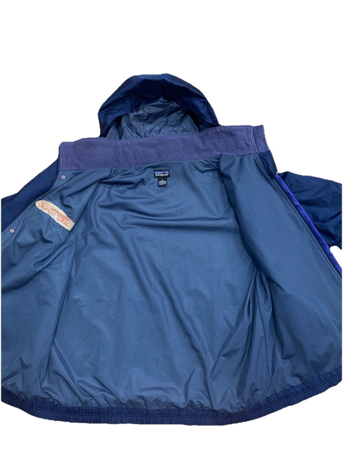 Condition - 9/10 washed and ready to go. Very clean for a 30 year old jacket. Extremely Rare. Will not see another one being sold. Embrace the nostalgia with the Vintage Patagonia 90’s Striptease Movie Cast & Crew Jacket. Crafted for comfort and style, this windbreaker features a sleek blue polyester outer shell with a solid pattern that pays homage to the iconic era of the 90s. The jacket is designed in a regular fit, size XL, ensuring ample room for a relaxed silhouette. Functionality meets fashion with this hooded jacket that boasts zipped pockets for secure storage and an adjustable zip closure for varying levels of warmth. The polyester lining and insulation materials provide durability and wind resistance, making it an ideal choice for casual outings or walking adventures. This limited-edition piece is a must-have for collectors and fashion enthusiasts alike, with its unique movie theme that celebrates a memorable film from the past.