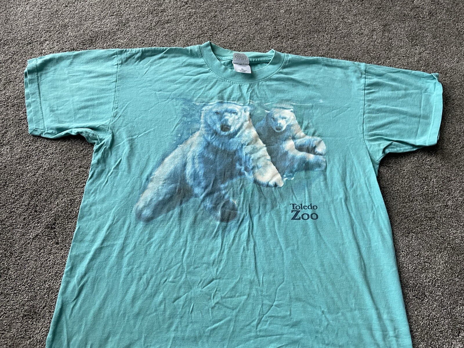 Love this vintage tee! The teal color is vibrant, and the polar bear graphic instantly takes me back to the '90s. Super soft cotton makes it super comfy for everyday wear, and the fit is just right—relaxed but not baggy. Washes well, holds its shape, and the design stays crisp. Perfect for animal lovers or anyone who appreciates retro style! Great addition to my casual wardrobe.