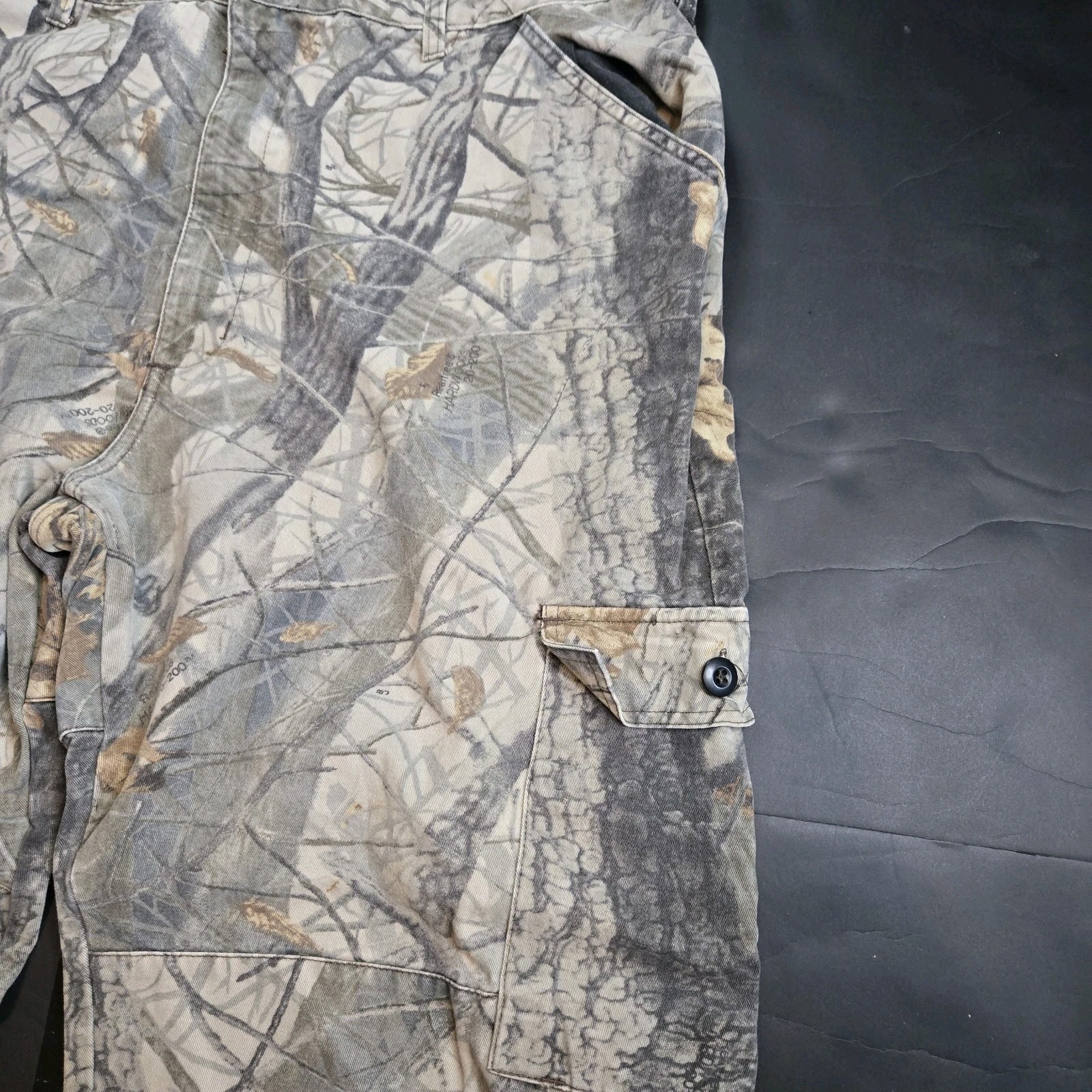 The Vintage 90's Walls Camo XL 31 Inseam Cargo Pants are a rugged and stylish addition to any man's wardrobe. Made of durable canvas fabric with a high rise, these pants feature a classic zip and button closure, perfect for everyday wear or outdoor adventures. The Realtree Hardwoods USA camouflage pattern adds a touch of nostalgia and authenticity to the design, while the cargo pockets and straight leg style offer both functionality and a timeless look. Whether you're exploring the great outdoors or just lounging around, these versatile pants are sure to keep you comfortable and stylish.