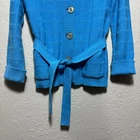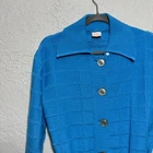 Item For Sale: Vintage 90s Romanian Cardigan Sweater Womens Medium Windowpane Belted Button Y2K Women's size medium Rich, sky blue color knitted together with a window pane pattern Button down front Front hand pockets Belted waistline Made with 100% virgin acrylic fibre Made in Romania Fabric Content: 100% Virgin Acrylic Fibre Approximate Measurements: Pit to pit: 18" Length: 27" Item Condition: Item is in very good preowned condition with no flaws. Shipping Information: Purchases are shipped the next business day after full payment is received, and on occasion an item purchased early in the day may end up shipping out that same day. The shipping service used will depend on the specific weight and dimensions of the item, but the most commonly utilized services are USPS First Class, USPS Ground Advantage, or USPS Priority Mail. If this is a book purchase, USPS Media Mail is used. Free returns are accepted for any reason within 60 days of purchase. The return shipping is free to the buyer. Once the returned item has been received, you'll be issued a refund for the original item cost (not including the original shipping cost). Store Information: Thank you for supporting my small business! Providing affordable, quality products and top-notch customer service is my top priority. If you have any concerns about an item you receive, please don't hesitate to reach out. I'm always happy to address any concern you may have.