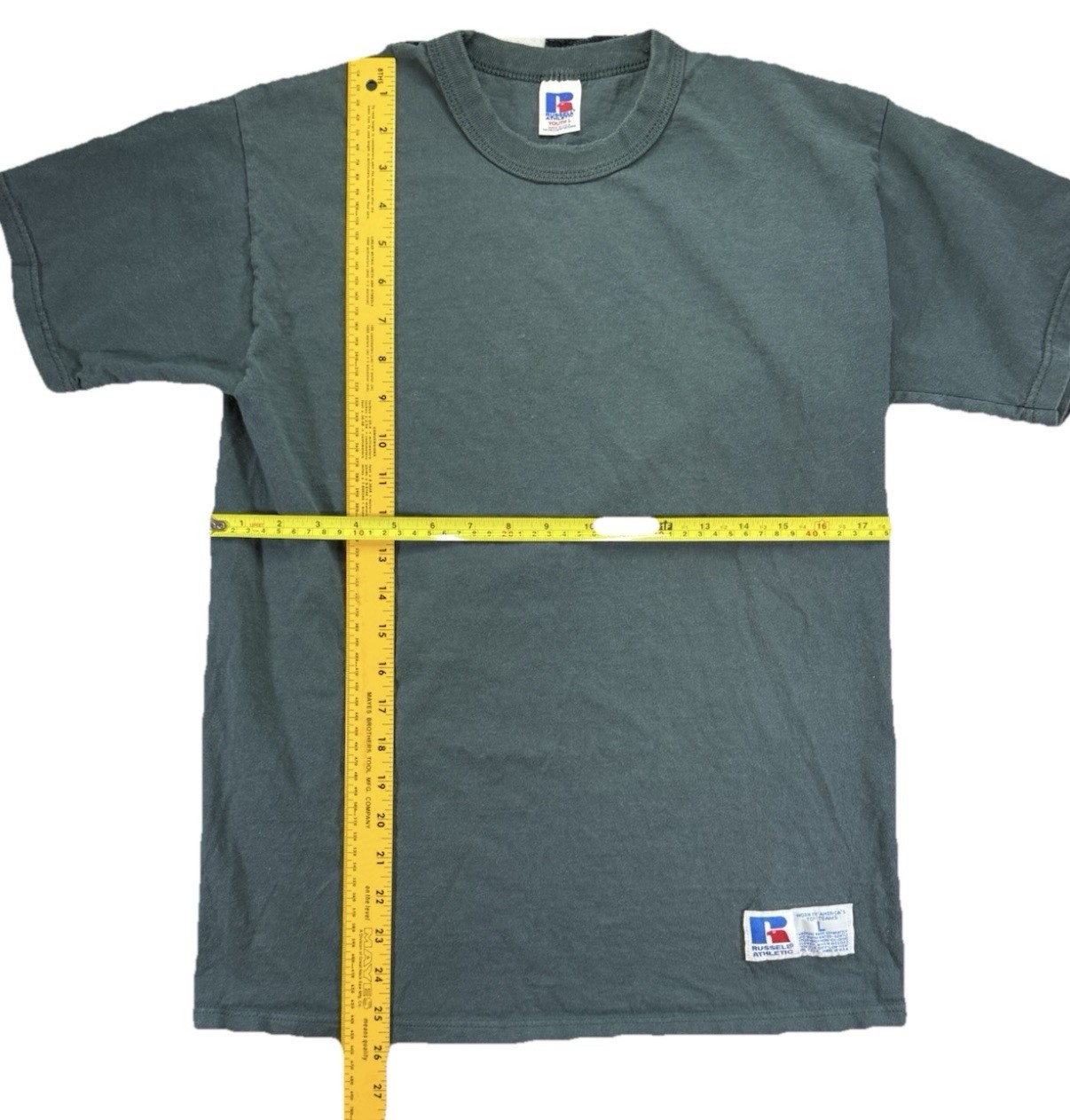 Vintage 90s Russell Athletic Blank T Shirt! Size youth large in a faded black color. Measurements in photos. Preowned very good condition with some signs of normal wear. Preowned subject to stain/imperfection/signs of wear/fade/discoloration.