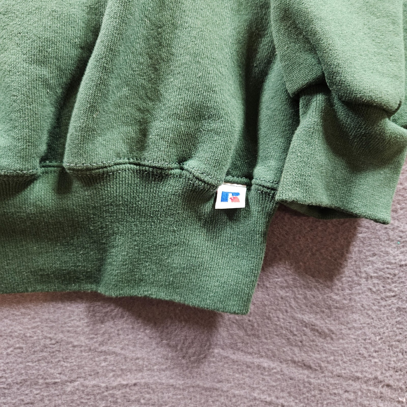 This Vintage 90s Russell Athletic Crewneck Sweatshirt in size Medium is a classic piece with a solid green color and a crew neck design. Made from a blend of polyester and cotton, the fleece fabric makes it cozy and comfortable. Ideal for gym training or casual wear, this pullover sweatshirt features a retro 90s style with a touch of USA theme, making it a versatile addition for all seasons. Machine washable for easy care, this crewneck sweatshirt from Russell Athletic is a must-have for those who appreciate vintage fashion.