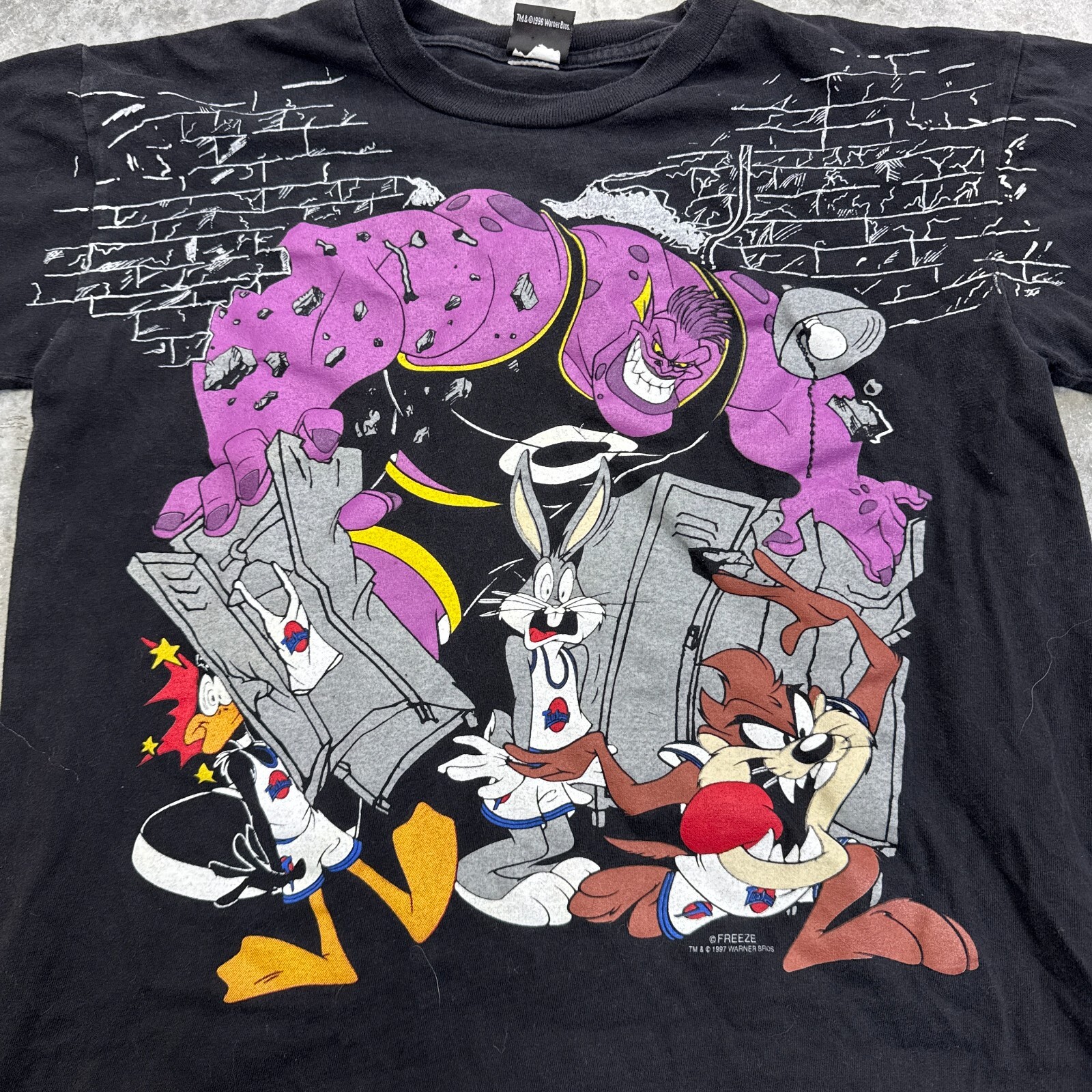 Vintage Space Jam T Shirt Mens Large Boxy Black 90s Monstars Jordan Bug Bunny Please check the measurements in the photos in order to gurantee correct fit of the clothing item! the measurements tend to be located at the end of the set of photos! thanks! Our customers are always our first priority here at MJTvintage! if you ever have any concerns please contact us we typically respond very promptly! if there is for any reason your not happy with a purchase don't leave a bad review just contact us and we will be happy to accommodate any issues you had, we believe in going the extra mile for our customers!! lastly, you are always the top priority as the customer and we thank you for your support! Contact us We can be contacted at any time through eBay messages if you have any questions, comments or product requests. We will respond to you within 24 hours and do our best to help you out! We encourage our customers to contact us with any questions or concerns! We'd like to be sure you are completely satisfied with your purchase. Returns For our Buyers Convenience we offer free returns! we do though stringly discourage returns for the item not fitting as we include detailed measurements in our listings so please try to be respectful of that, thanks! Shipping All packages are shipped next day 100% of the time except if purchased on the weekend they go out on Monday morning! we pride ourselves on our fast shipping and hold true to it always! Disclaimer most of the items we sell are vintage (20 years & older), therefore some of them might have minor flaws that are caught in the pictures but we try our hardest to describe and picture any flaws! Free eBay listing template designed by © dewiso.com.