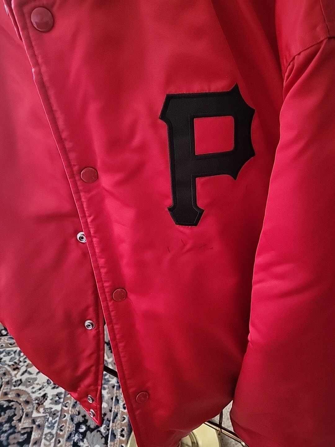 Hello up for sale is nice pittsburgh pirates starter jacket size medium red &black no holes this is tge puffer liner one this masthead big logo on back