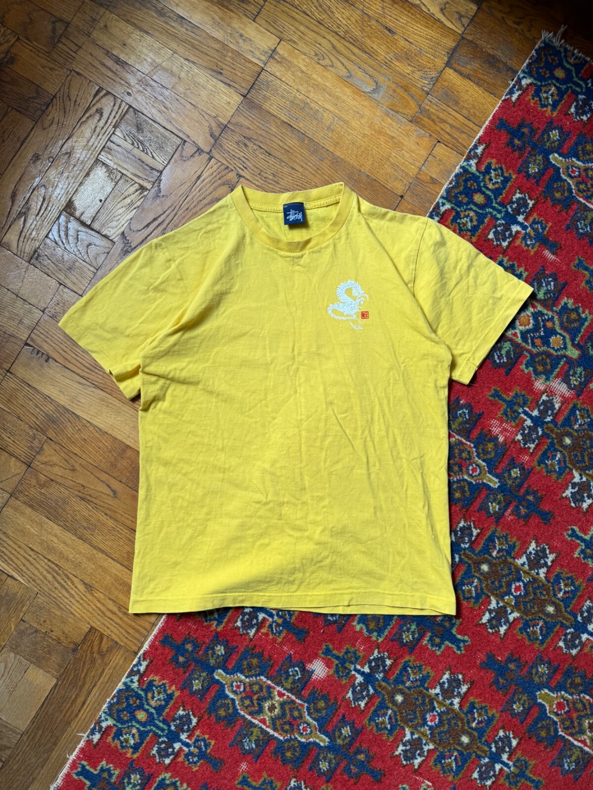PLEASE READ THE DESCRIPTION!!! DON’T BE SHY TO ASK ANY QUESTION Stussy dragons t shirt Brand: - . Size On Tag: - L Condition: USED CLOTHING PLEASE LEAVE YOUR PHONE NUMBER ON THE NOTE WHILE MAKE A PURCHASE AND PLEASE MAKE SURE YOUR ADDRESS IS COMPLETE AND CORRECTDon’t Worry About Customs Tax or Fees. I usually Declare all Items as ‘Gift’ & Declare Value of Item Lower then Original Price. All Items are Sold “ AS IS “ so Please be Sure to Read The Entire Description and Look at All The Pictures.ATTENTION:Please pay close attention to measurements provided.Do not rely on tag size as pre-worn items may have been altered, stretched or shrunk & vintage sized do not directly translate the modern sizes. The best way to ensure a correct fit is to compare our measurements with the measurements of a similar item that you know fits you well. Please enlarge the photos for clearer image. THANKS FOR YOUR VISIT