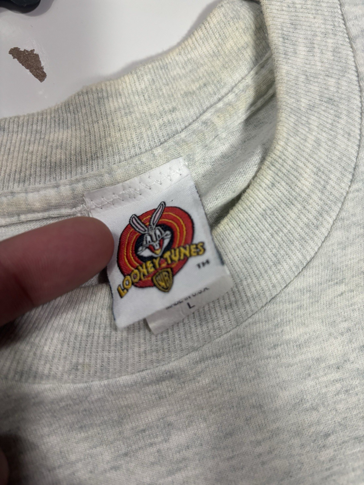 Embrace the nostalgia with this classic Vintage 90s Taz Looney Tunes T-Shirt. A timeless piece that showcases your love for the iconic Taz character, this gray, size XL tee is a must-have for any collector or fan. Made in the United States during the memorable era of the 1990s, it embodies the spirit of that decade with its round neck and short sleeves. Constructed from breathable, lightweight cotton, this shirt is versatile enough for all seasons, from the warmth of summer to the coolness of winter. Its solid gray color and bold 'Looney Tunes' spell-out logo accent make it a standout piece, while the regular fit ensures comfort for everyday wear. Add a touch of vintage flair to your wardrobe with this unique, unisex t-shirt.