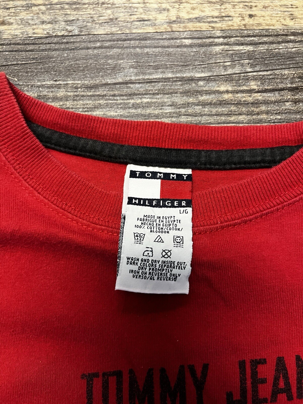 This vintage 90s Tommy Jeans L/S T-shirt in red is a must-have for any fashion enthusiast. Made with high-quality graphic printing, this tee features Tommy's iconic logo on the front, showcasing the brand's unique style. The long sleeve shirt is perfect for men who want to stay comfortable while still looking stylish. It is available in size L, making it a great fit for most people. The shirt's color and theme are perfect for those who want to add a touch of nostalgia to their wardrobe. The Tommy Jeans brand is known for its high-quality clothing, and this shirt is no exception. It is perfect for casual wear or for dressing up for a night out. So, if you're looking for a unique and stylish shirt, this vintage 90s Tommy Jeans L/S T-shirt is the perfect choice.