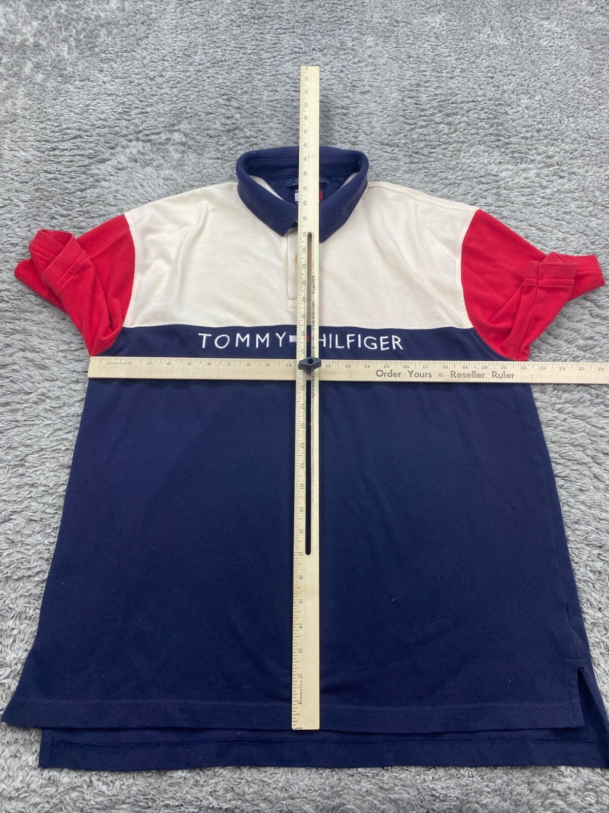 $ 5.16VTG Tommy Hilfiger Embroidered SPELL OUT Striped Polo S/S 2XL XXL Y2K Retro