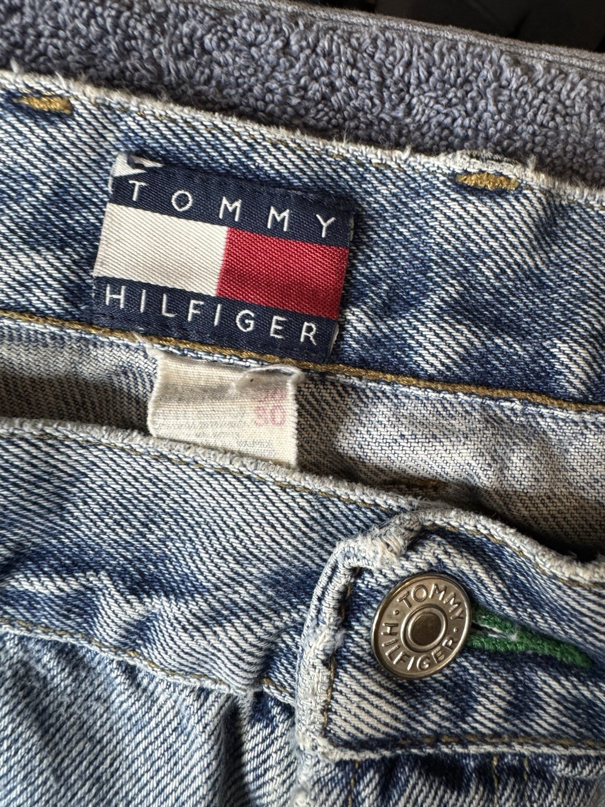 $ 10.56Vintage 90s Tommy Hilfiger Baggy Blue Jeans Mens 34x30 Flag Logo Spellout
