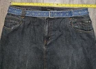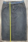 This Vintage 90s Venezia Long Maxi Denim Jean Skirt in a solid blue color with a zip closure and slit features a high rise, cowboy character design that is perfect for casual, workwear, and travel occasions. Made of cotton denim fabric with a retro theme, this plus size 18 skirt is machine washable and suitable for all seasons. Complete with accents like buttons and pockets, this long maxi skirt represents a blend of 80s, 90s, Southwestern, and preppy styles, making it a stylish and versatile addition to any woman's wardrobe.