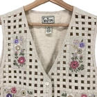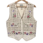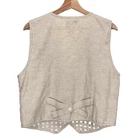 *Approx. Measurements: Chest: 38" Length: 22" *All measurements are taken with the item laying flat and then doubled, when necessary. *Size: Medium; See measurements to ensure a proper fit *Description: Women's vintage Tantrums vest in good pre-owned condition with a couple of flaws. There are a couple of small yellow spots & one of the mirrors on upper left is loose (See last 2 photos). Button front Basket weave open front Cotton/Linen *If you are unsure of sizing, select an item of yours that fits you the way you like. Measure your item and compare it to the measurements I have given above. **All clothing items are part of a promotion that includes FREE shipping when you buy 3 or more items. Add the items to your cart and when you checkout the free shipping should be automatically added. If you have any problems just message me and I will try to resolve the problem. B73
