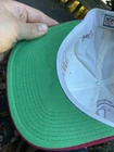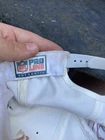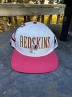 Vintage 90s Washington Redskins NFL Laser Sports Specialties Shadow Snapback Hat. A super cool hat with the Redskins logo and the team's name behind it in a cool script. It has the one panel with the laser design and logo. The hat has sat in storage for an extended amount of time so there are some storage stains throughout the hat as shown in the pictures. There are marks around the entire inner brim, and there are some marks on the outside of the panels and throughout the hat. A good and thorough clean would restore the hat and make it look great. A great piece for any fan of vintage hats and vintage Redskins gear.