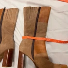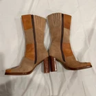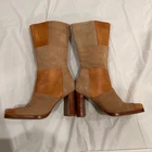 Vintage 90s Candies Boots Leather Suede Patchwork Tan Heeled Mid Calf Size 7 - measurements shown in photos, 3.5" heel height 12.75” circumference at top Zip closure Preowned, great condition Original box not included Feel free to message me with any questions Check out my other listings to save with multiple item discount and combined shipping Open to offers - I usually send offers of 10-20% off but you don’t have to wait Crossposted - unless otherwise stated, I only have one of this item available, advertised on multiple sites