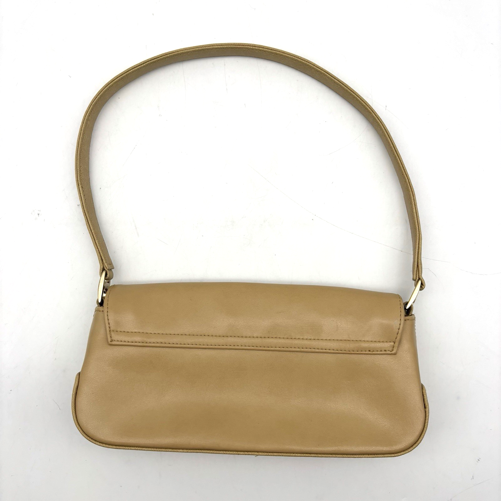 Vintage 90s Y2K Liz Claiborne Mini Baguette Purse Beige Faux Leather Beige Fabric Lining Magnetic Snap Closure Zip Pocket Inside Gold-tone Hardware Shoulder Strap Measurements: 9.5" wide 4 3/4" tall 2 1/4" deep 8" strap drop Excellent vintage pre owned condition. Very gently owned, hardly used. Clean and from a smoke free home.