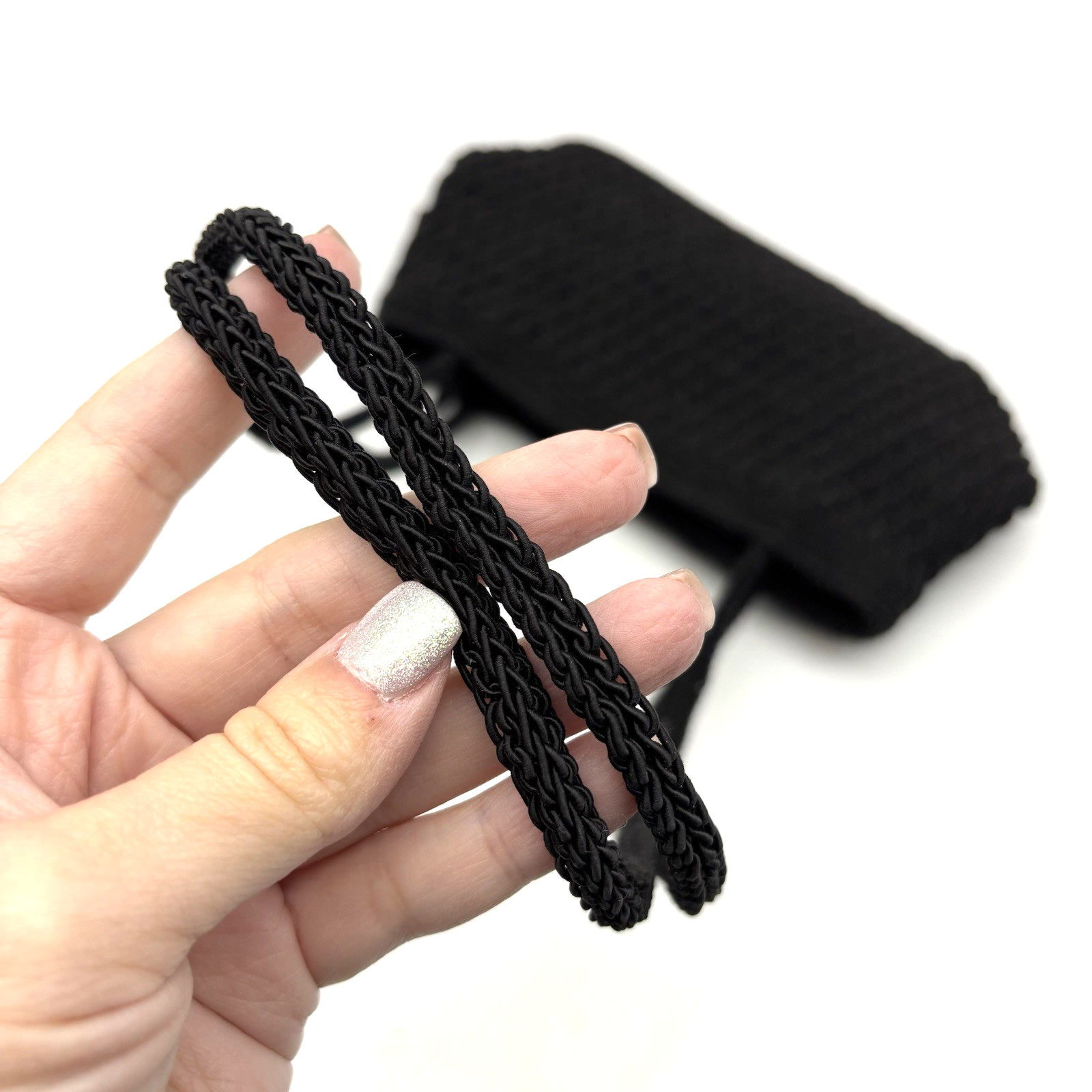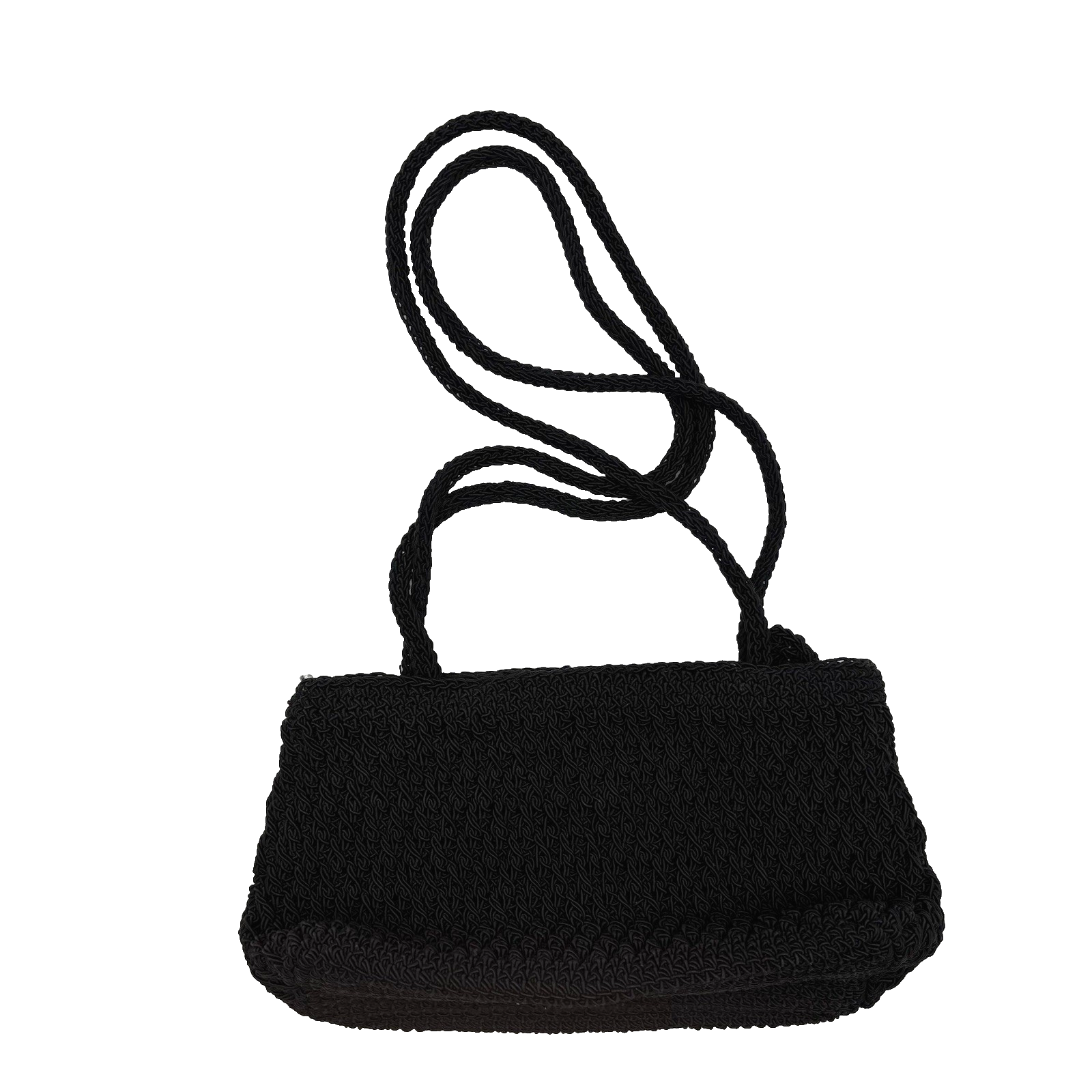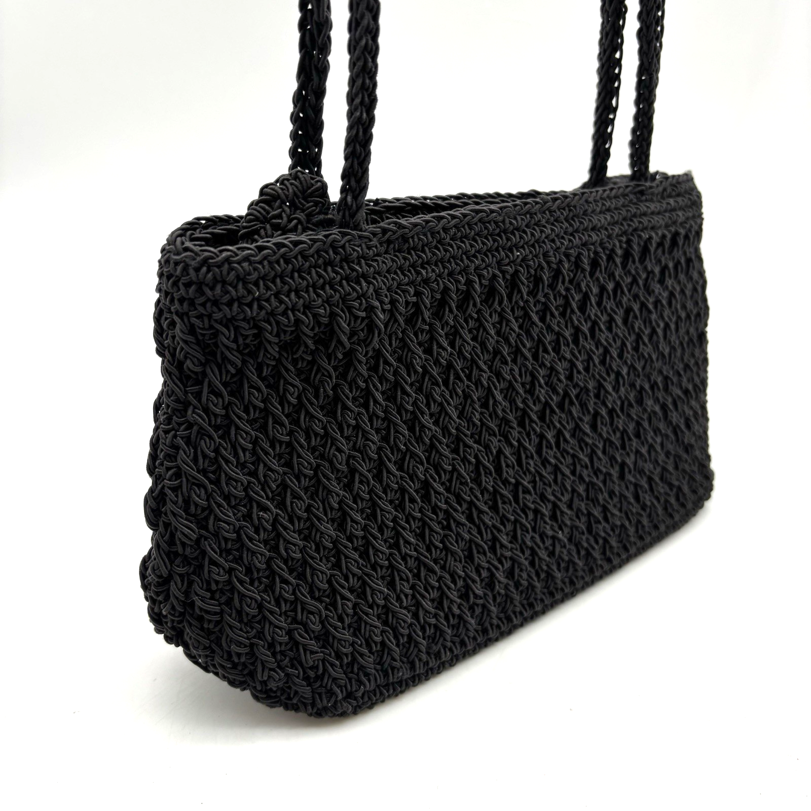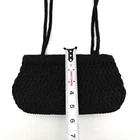 Vintage 90s Y2K Liz Claiborne Mini Shoulder Bag 60% Cotton, 40% Olefin Black Woven Crochet Body Beige Fabric Lining Double Shoulder Straps Zip Closure 1 Small Zip Pocket Inside Measurements: 9" wide 5" tall 3" deep 11.5" strap drop Excellent vintage pre owned condition. Very gently owned. Clean and from a smoke free home.