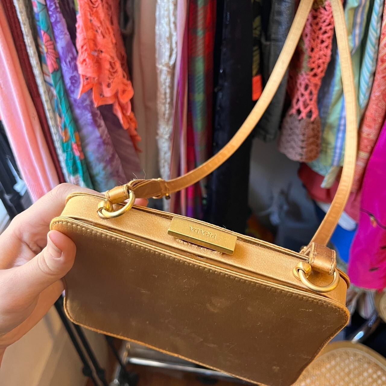 This vintage Prada crossbody bag is a stunning Y2K gem! The gold satin exterior gives it a luxe, retro vibe that instantly elevates any outfit. Perfect for those who love unique, high-end accessories with nostalgic charm. The craftsmanship is impeccable, and the size is just right for essentials. A must-have for fashion lovers!