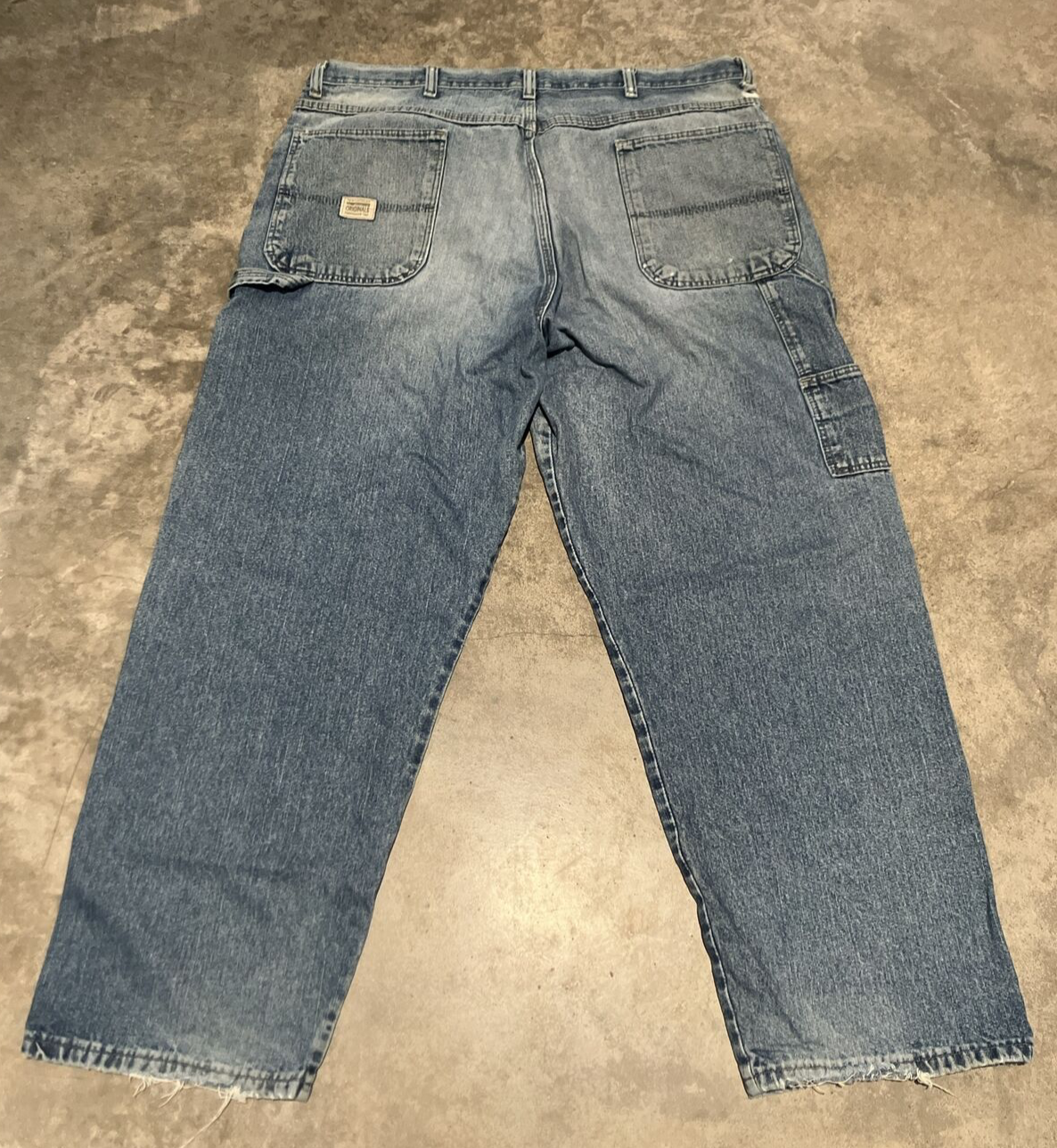 Vintage Wrangler Carpenter Jeans 38x30 Blue Denim Utility Baggy Skater Y2K 90s Pre-owned. See photos for condition details and measurements. To upcycle, I reuse shipping material as often as possible. Buy more from my store and save on shipping.