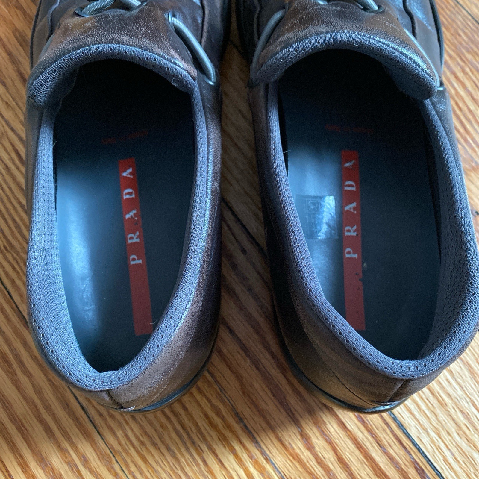 Vintage dark brown Prada loafers in good condition. They are very comfortable and easy to wear. You can dress them up or down. Tagged size IT 39, would best fit a women’s 8/8.5. There are scuff marks throughout, as well as general signs of wear. However, the soles are in good condition, the inside is clean, and the scuff marks are repairable if you take them to a cobbler. Please keep in mind that you are purchasing a vintage item that’s been previously worn.
