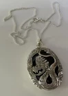 Stunning Hallmarked HM Sterling Silver 925 Black Onyx Dragon Pendant with 16” Curb Chain I also have the matching earrings - please see my other listings Marked - Bale / Jump ring bear full English hallmark and this is also marked 925. Makers mark is S&Co Inventory Code - MR2 Weighs - 26 grams complete with chain - most of the weight is the black onyx Measures 50mm x 32mm long including bale and curb chain is 16” Good Vintage Pre-owned Condition