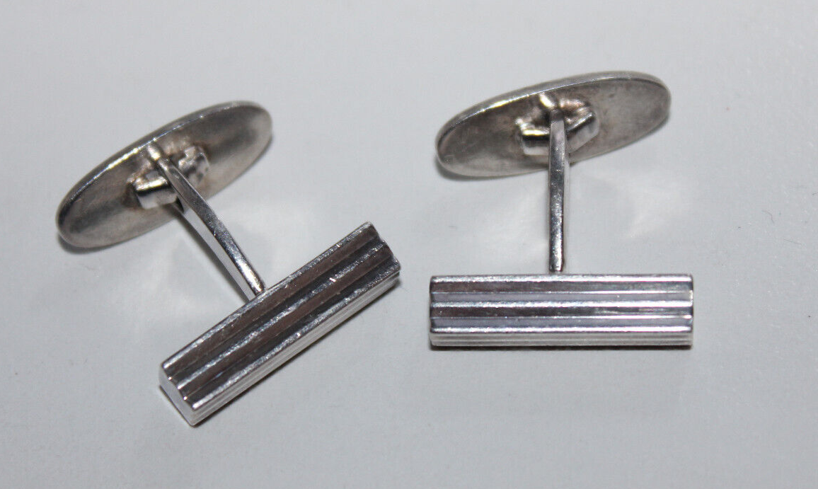 Elevate your formal attire with these Vintage Aarre & Krogh (A&K) Denmark 925S cufflinks. Crafted from sterling silver, these cufflinks exude timeless elegance and are a testament to classic Danish craftsmanship. Their sleek silver color provides a versatile accessory that complements any shirt and suit combination. Designed with sophistication in mind, these cufflinks do not feature any stones, allowing the intricate metalwork and the luster of the sterling silver to be the focal point. Whether it's for a special occasion or to add a touch of luxury to your everyday style, these A&K cufflinks are an essential addition to any discerning gentleman's jewelry collection. Vintage Aarre & Krogh A&K Denmark 925S Cufflinks. Weight.16.04 grams. Dimensions. 21 mm X 4.8 mm. Sorry.We cannot ship to the United States at this time