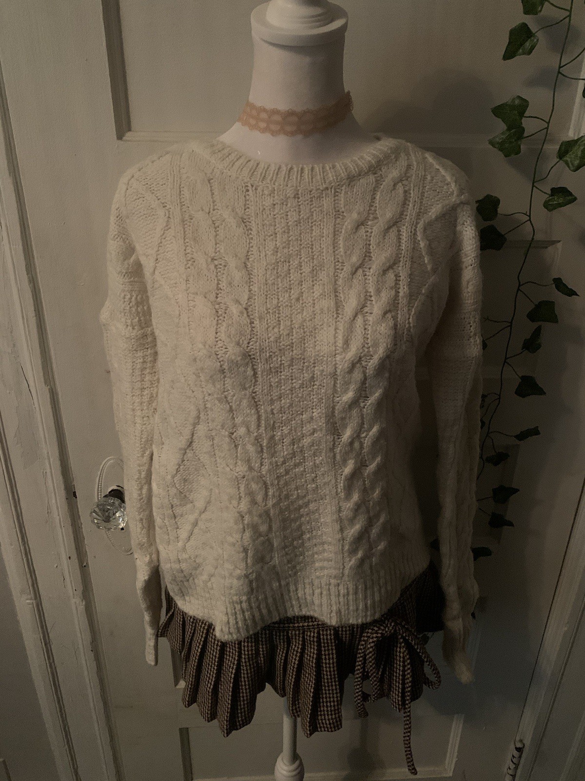 This sweater is so incredibly cozy and well-made! I love the classic cable knit design and the soft, heavy fabric keeps me perfectly warm. It's become my go-to for chilly days and always gets compliments. The fit is just right and the ivory color goes with everything. Such a fantastic find!