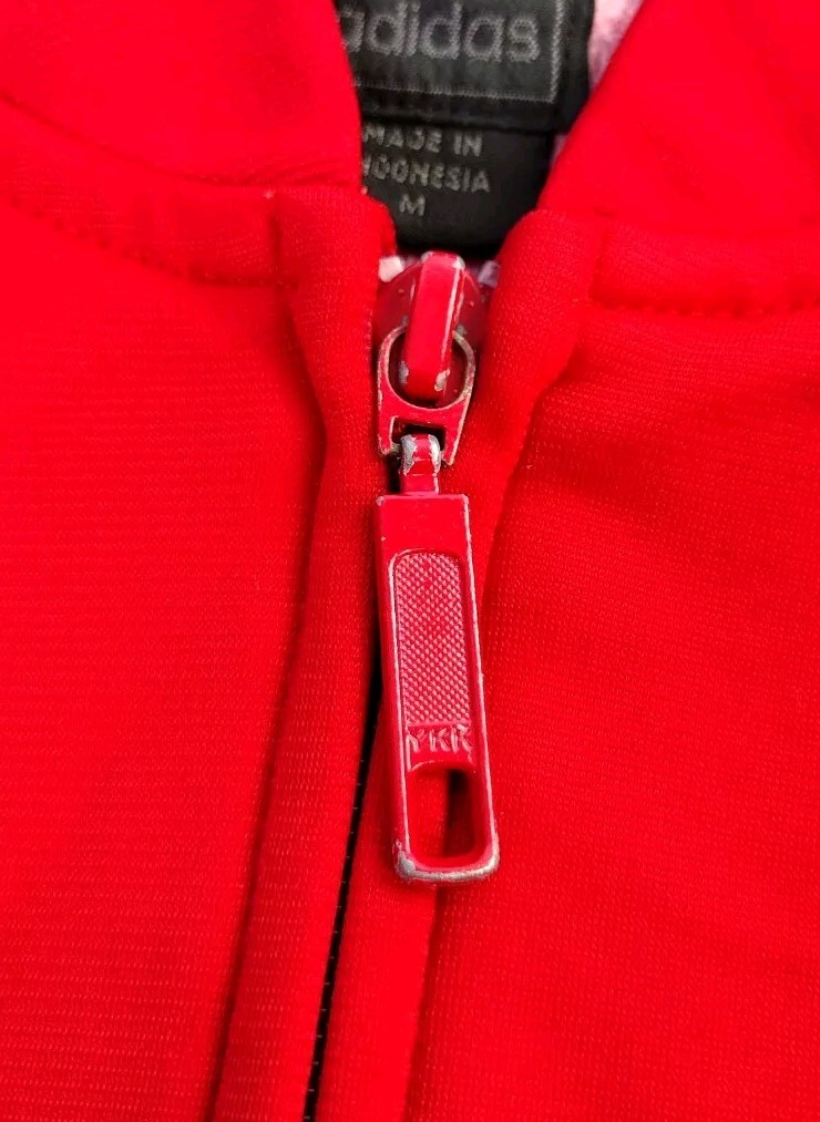 Elevate your sportswear collection with this classic Adidas track jacket. Featuring a vibrant red color with the iconic 3-stripe design, this jacket is perfect for any athletic activity. The full-zip closure and mid-length cut make it easy to layer over other clothing items, while the polyester insulation keeps you warm in colder weather. With a band collar and embroidered accents, this vintage-inspired jacket is perfect for travel, casual wear, or workwear. The jacket is machine washable and comes in a size M. Whether you're playing basketball, running, or simply going about your day, this Adidas track jacket is a versatile addition to any wardrobe.