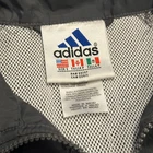 This Vintage Adidas Gray Hooded Full Zip Windbreaker Jacket in size Small features a stylish red and white stripe design, making it a perfect casual outerwear choice for men. The lightweight nylon outer shell with a polyester lining provides warmth for the winter, fall, and spring seasons. The full zip closure, hooded feature, and Adidas logo accents add to the classic windbreaker style. Easy to care for with machine washable instructions, this jacket is a must-have for any fashion-forward individual looking for a retro touch in their wardrobe.