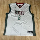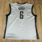 Show your support for the Milwaukee Bucks with this vintage Adidas Andrew Bogut NBA jersey. The white jersey features Bogut's number 6 and is made for men in size XXL. Perfect for basketball fans, this jersey is ideal for regular season games and can hold up to 8 oz. The jersey is made by Adidas, a trusted brand in sportswear, and is designed with the National Basketball Association (NBA) league. Get your hands on this collectible item and add it to your fan apparel and souvenir collection. SKU: NV-22-67