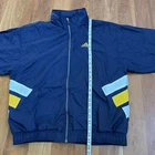 Vintage Adidas Track Jacket Large Windbreaker Full Zip Retro Striped Navy Blue