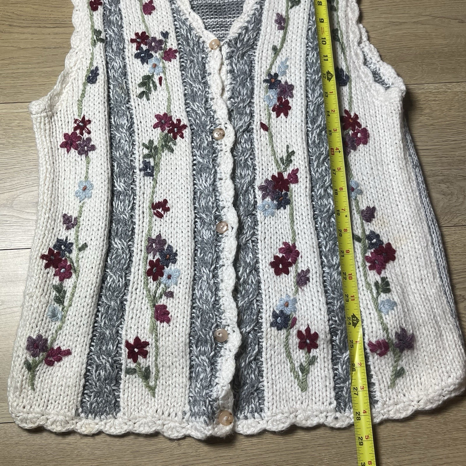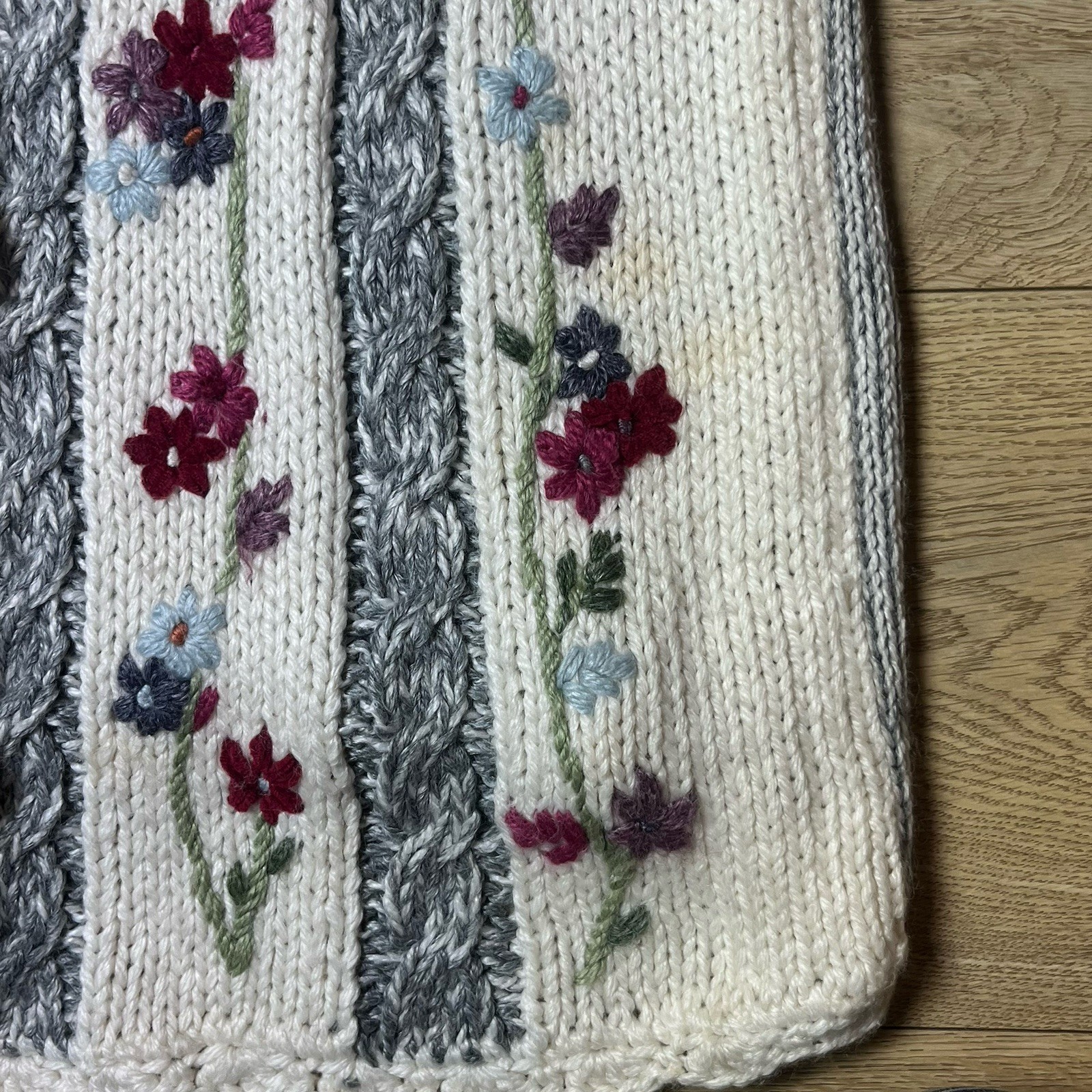 $ 15.32CJ Banks Hand Embroidered Cardigan 2X Maroon Floral Zip Sweater Shoulder Pads