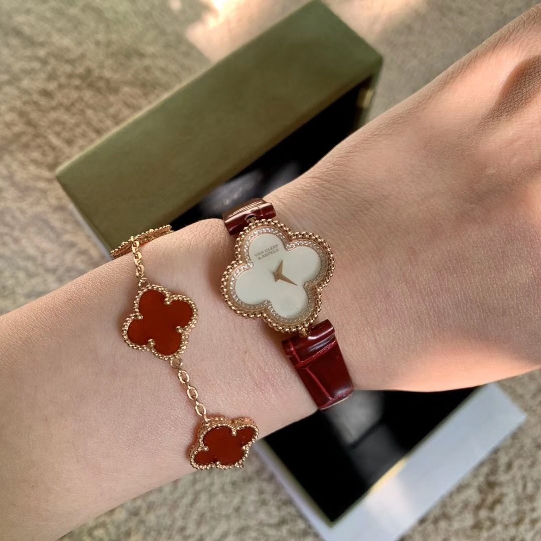 $ 100.98Vintage Alhambra Bracelet 18K Yellow Gold with Pink Agate Clover by VC Arpels