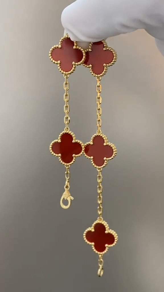 $ 118.8Vintage Alhambra Carnelian Guilloche Bracelet 18K Yellow Gold VC Arpels