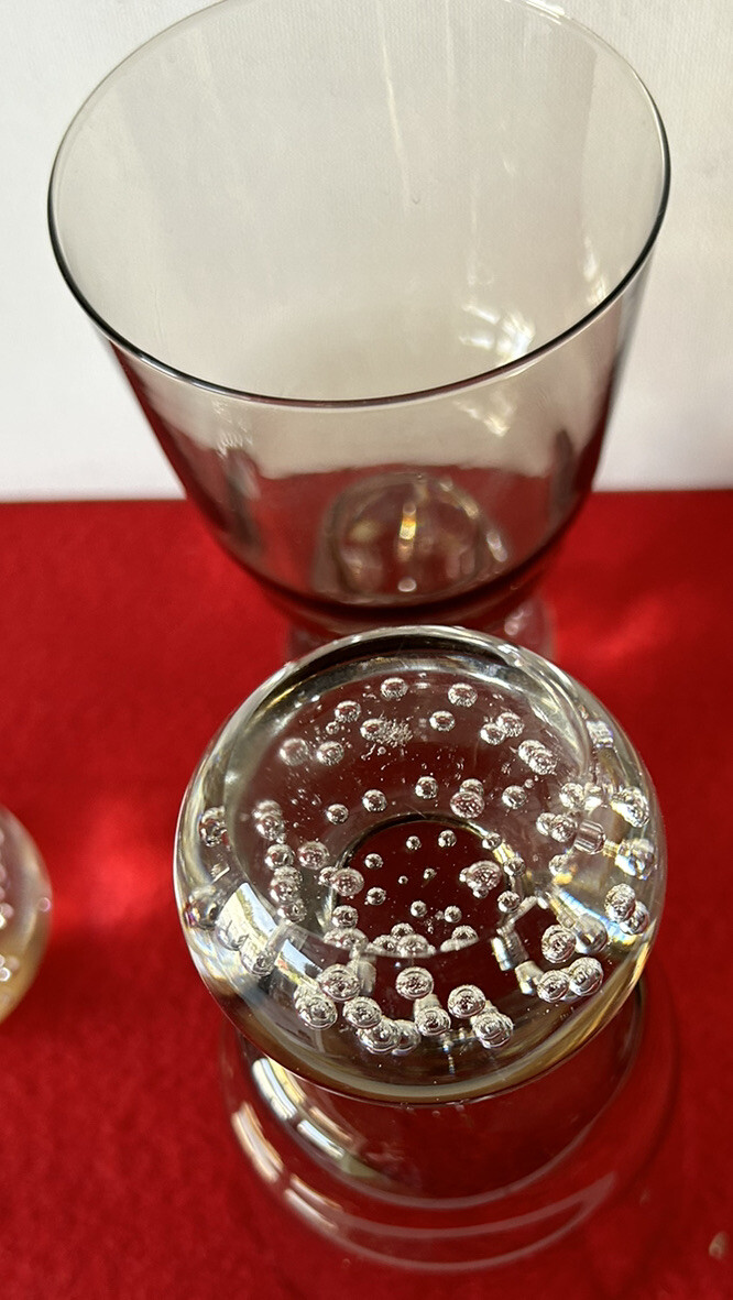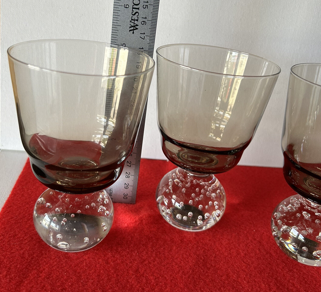 Vintage Amber Cocktail Glass Bubble Base Cordials Set of 3. Liquors Glass Pre owned but in good condition Set of 3 Please see pictures for measurements and details