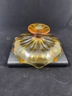 This exquisite amber glass pedestal bowl with 9 petals and a footed base is a must-have for any vintage or elegant glass enthusiast. The beautifully crafted bowl is unmarked and boasts a stunning gold color that will add a touch of sophistication to any decor. Crafted using studio techniques, this bowl is perfect for serving candy or other small snacks in style. The production style of the bowl is elegant glass, which adds to its classic charm. This vintage piece is in excellent condition and will make a stunning addition to your collection. For Inventory - Closet Box 2001