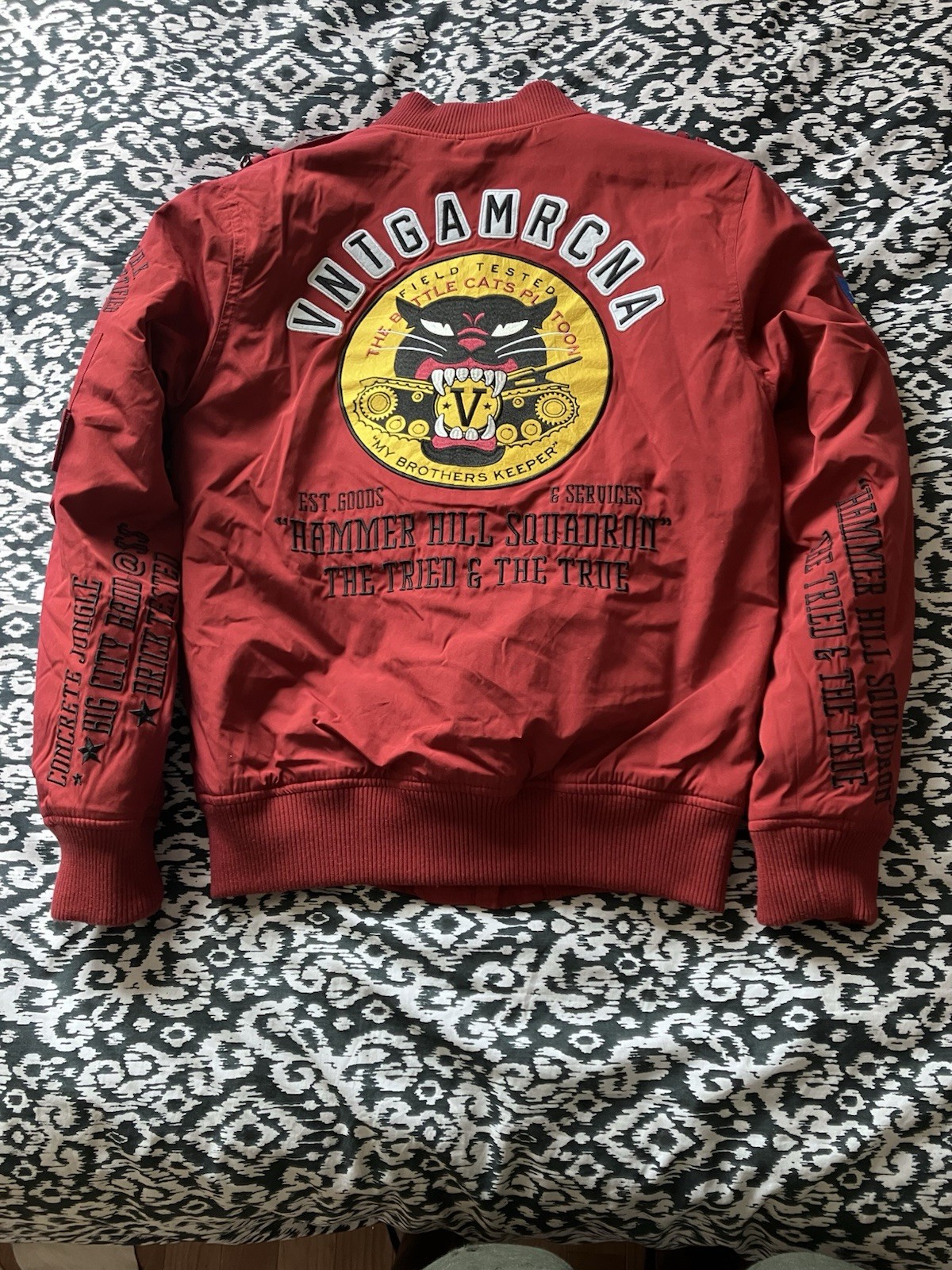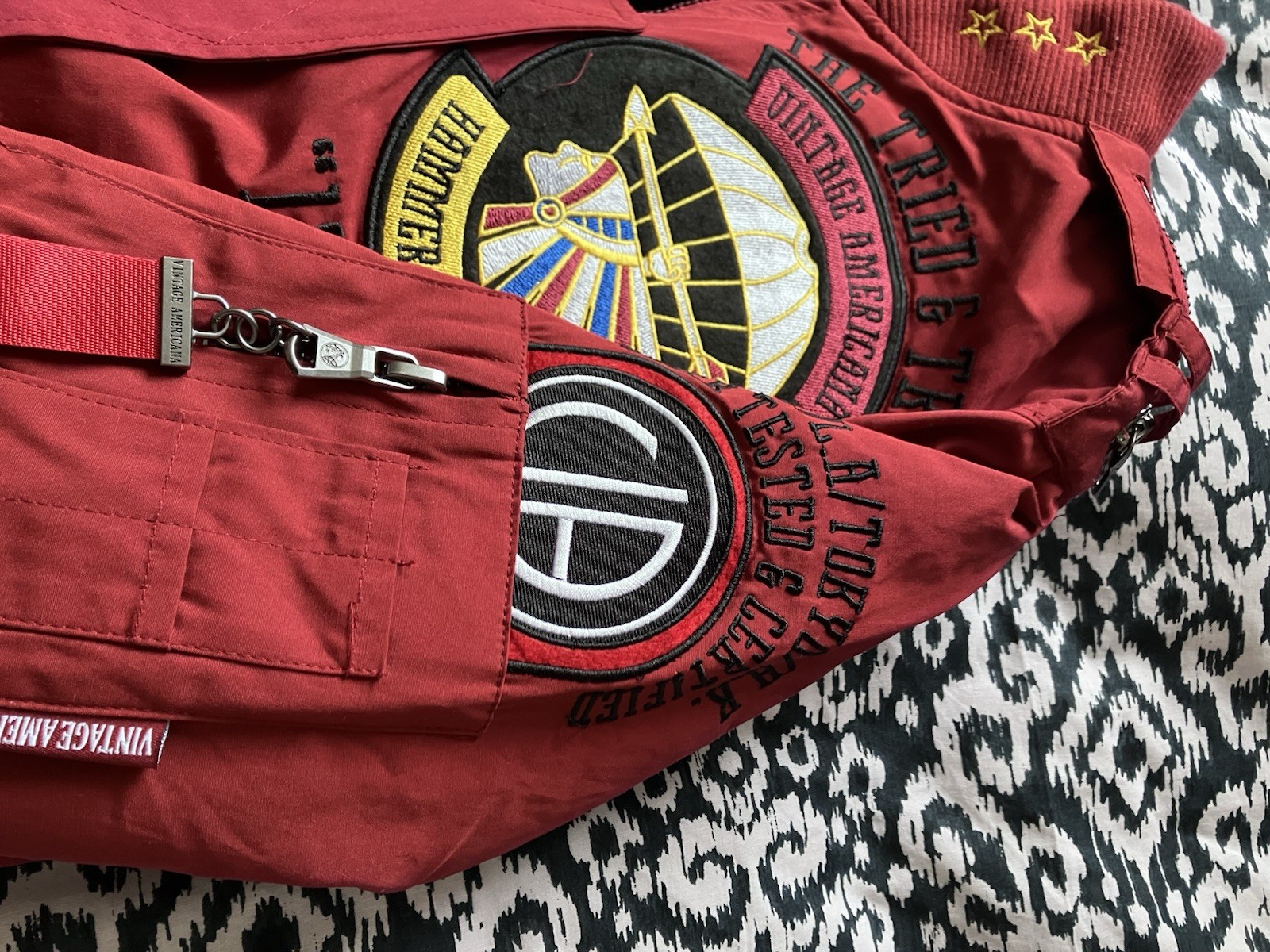 Discover the timeless appeal of our Vintage American Men’s Bomber Jacket, a perfect blend of style and comfort. Crafted from the softest alpaca material, this regular fit jacket in a striking red hue is a standout piece for any casual occasion. The bomber style, accentuated with a sleek zip, adds a touch of classic aviation charm to your ensemble. Available in size medium, this jacket is designed to cater to the fashion-forward individual who appreciates the unique appeal of vintage clothing. It's a versatile addition to your wardrobe, offering both warmth and a nod to retro trends. Whether you're out for a casual meet-up or just enjoying a laid-back day, this bomber jacket is sure to make a statement. Brand new only to be sold in the uk