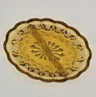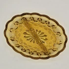 This vintage Anchor Hocking dish is made of amber glass in an oval shape, featuring divided sections for serving relish, candy, treats, or nuts. It was manufactured in the 1960s, making it a timeless piece that adds a retro touch to any table setting. With its unmarked design, this dish showcases the classic elegance and quality craftsmanship that Anchor Hocking is known for in the world of vintage glassware. Dimensions: 7 in L x 5 in W × 1.5 in T