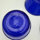 This set of three vintage Anchor Hocking cobalt blue 6oz custard cups ramekins bowls features a classic art deco style with a round shape and a pressed glass production style. Made in the United States, these original cups are dishwasher safe and perfect for all occasions. The cobalt blue color adds a touch of elegance to any table setting, and the impressed backstamp ensures authenticity. This set is a lovely addition to any decorative cookware or dinnerware collection.