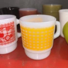 Type: Coffee Mug Time Period Manufactured: 1960-1969 Capacity: 6 ounces Brand: Anchor Hocking Material: Glass Production Technique: Fused Glass Production Style: Milk Glass Theme: Birds Color: Multicolor Occasion: All Occasions Product Line: Fire-King