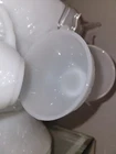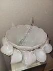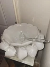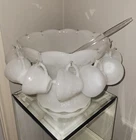 Anchor Hocking Vintage Milk Glass Punch Bowl Set – 27-Piece Complete Set (New in Box) Elevate your entertaining with this exquisite 27-piece vintage Milk Glass Punch Bowl Set by Anchor Hocking. This complete set includes everything you need to serve in timeless style. Crafted in durable, opaque white milk glass, the set features classic vintage design elements that add a touch of elegance to any gathering. Included in the Set: 1 Milk Glass Punch Bowl 12 Matching Cups 12 Cup Hooks 1 Ladle 1 Original Stand This set is new in its original box, making it a rare find for collectors or hosts who appreciate vintage charm and quality craftsmanship. Perfect for holidays, weddings, or retro-themed parties.