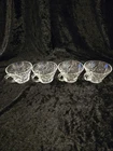 The Vintage Anchor Hocking Clear Glass Prescut Star Of David Punch Cups are a set of 4 beautiful cups made of pressed glass in the Starburst pattern. Produced in the 1960s, these original cups belong to the Early American Prescut/EAPC product line. The clear color and vintage design make them a unique and charming addition to any drinkware collection. Perfect for serving drinks or as a decorative piece in a home, these cups are a nostalgic reminder of a bygone era.