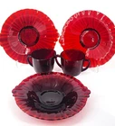 BRAND: Anchor Hocking Royal Ruby Red 3 "Old Cafe" Plates with Open Top Sugan and Matching Creamer. Matching Collection of Royal Ruby Red. Vintage 1950s. LOC/S-2 COLORWAY: Royal Ruby Red. SIZE: The Old Cafe Plates (3) are Approximately 8.5" Wide and 1" High. The Creamer is 3.5" Wide and 3" Tall. The Open Top Sugar Bowl is 3.5" Wide and 3" Tall. CONDITION: Excellent Vintage 1950s Anchor Hocking Royal Ruby Red Plates, Creamer, And Sugar Bowl. No signs of Chips, or Cracks. Please see my photos for exact detail! Thank you so much for stopping by to have a look your interest is always appreciated!