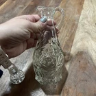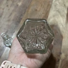 This vintage Anchor Hocking cruet is a must-have for any mid-century modern glassware collection. The clear glass is beautifully shaped into a Star of David pattern, with a glossy finish. The cruet is in excellent condition, ready to be displayed or used as a decorative piece. The cruet features a lid, making it perfect for storing oil or vinegar. It is also dishwasher safe for easy cleaning. This original piece was manufactured in the United States in the 1960s, and is a great addition to any kitchen or dining room decor.